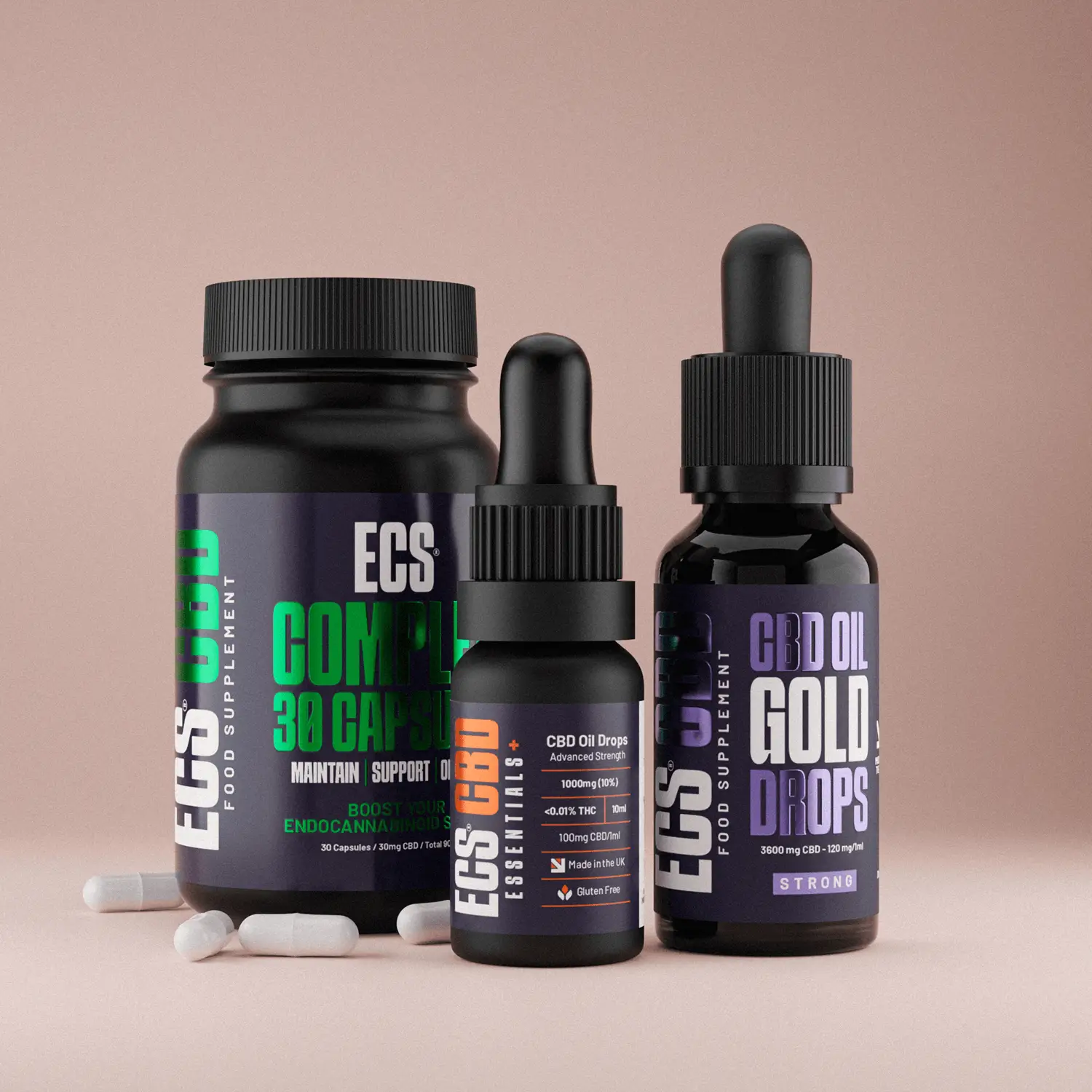The 30ml 12% ECS Gold Drops CBD oil delivers 3600mg of CBD, making it the strongest oil in the ECS range. This formulation is often used later in the day or as part of an evening routine.